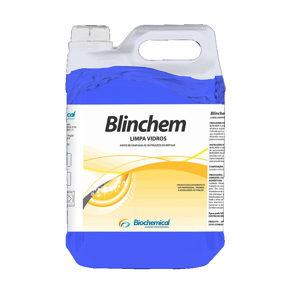 BLINCHEM é um limpador de vidros, elaborado com matérias prima de primeira qualidade, que garantem rapidez e eficiência na remoção de sujeiras e gorduras das superfícies, não necessitando de enxágue. É indicado para a limpeza de vidros, acrílicos, fórmicas, espelhos, aço inoxidável e superfícies cromadas e vitrificadas em geral, deixando uma camada protetora que retarda a deposição de poeira e manchas.